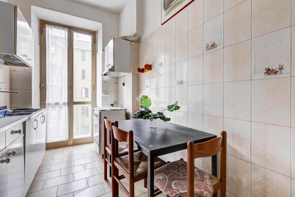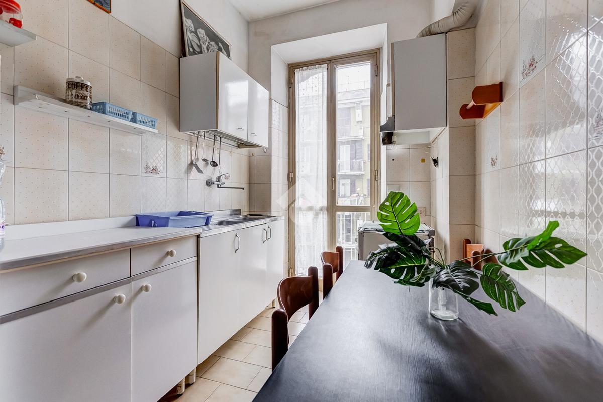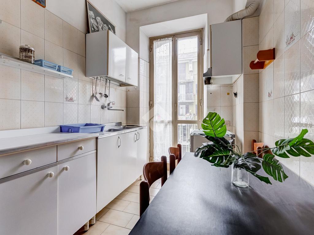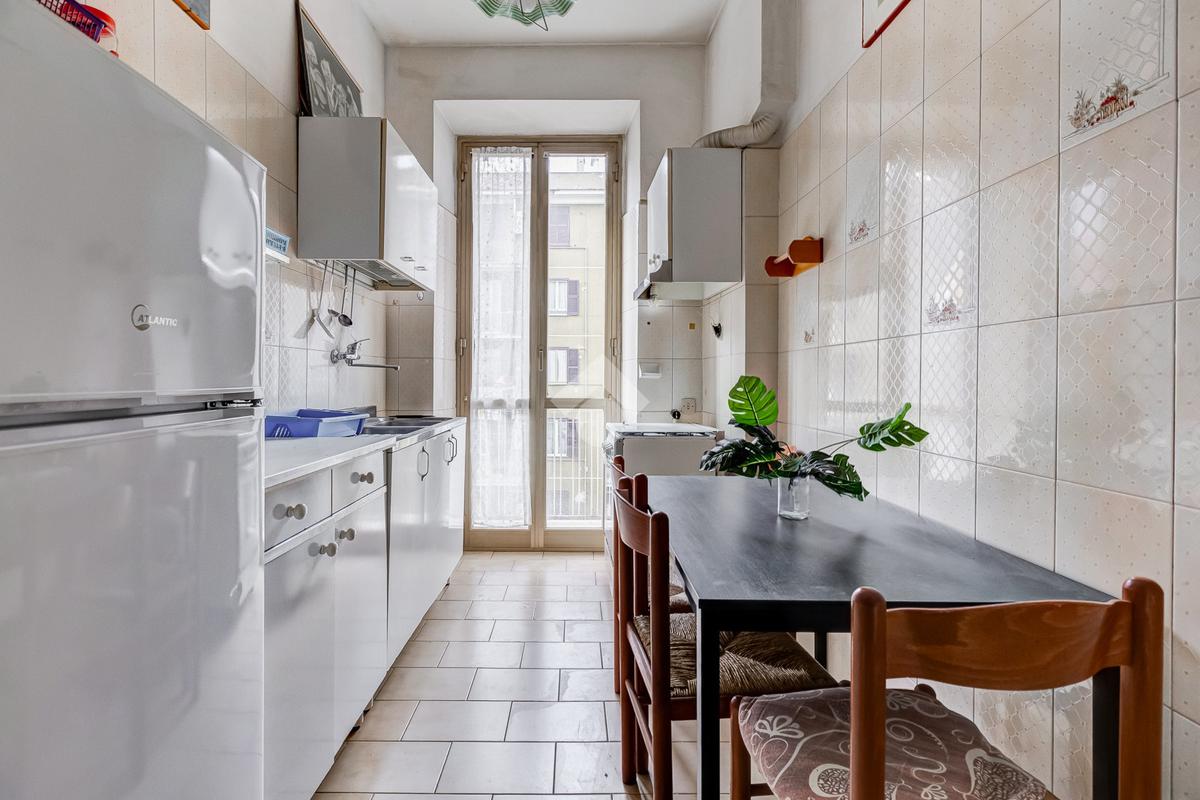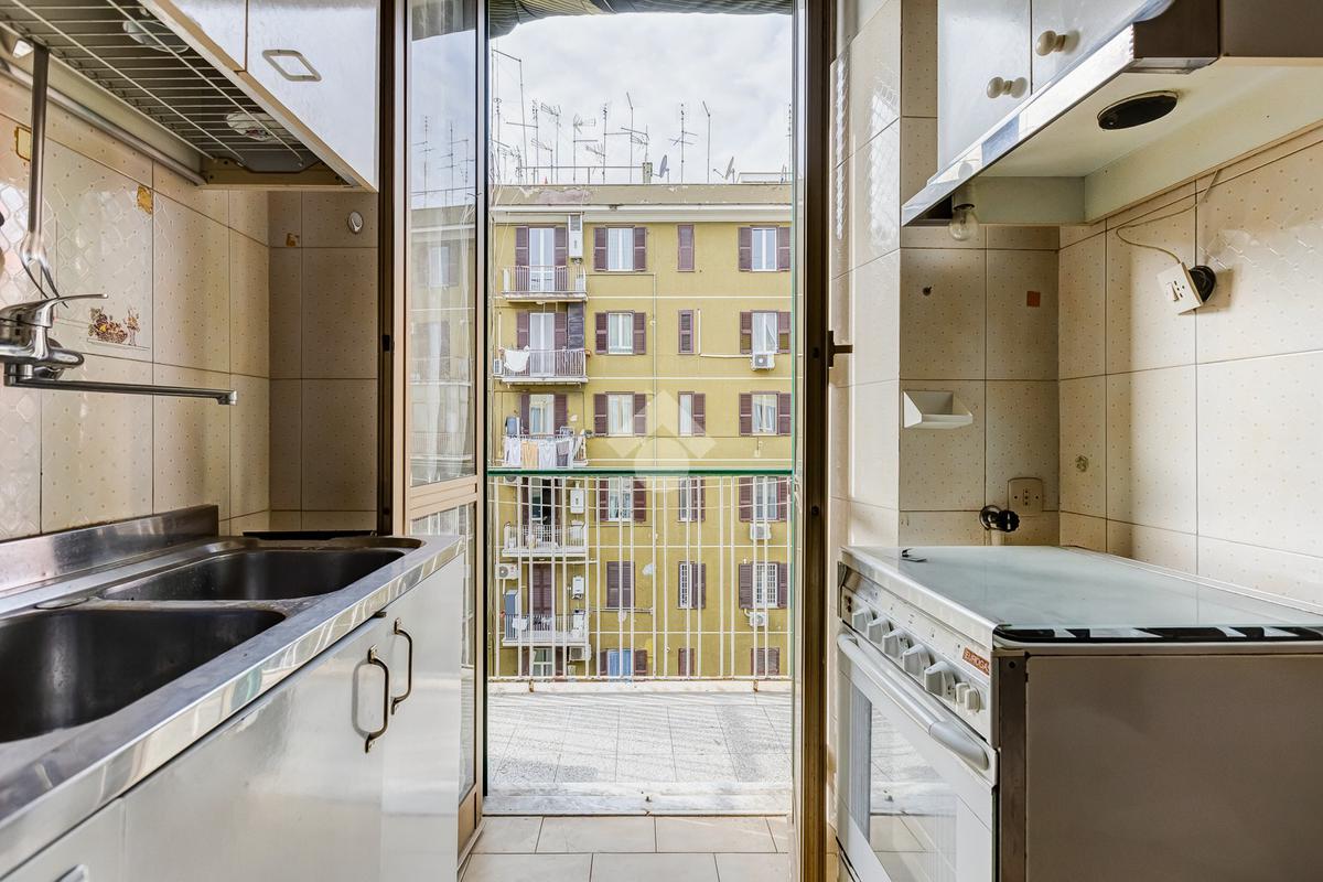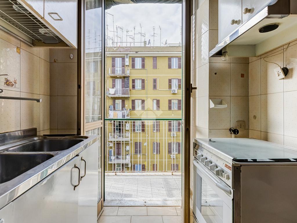 Dalla cucina si accede al balcone, che offre uno sfogo esterno funzionale.
