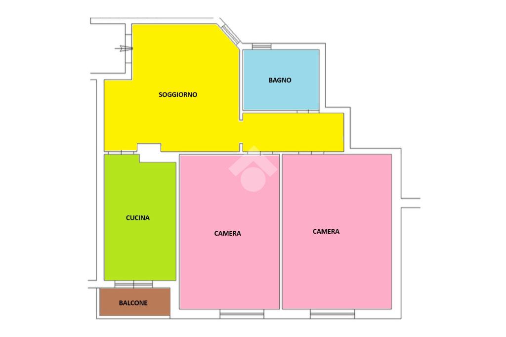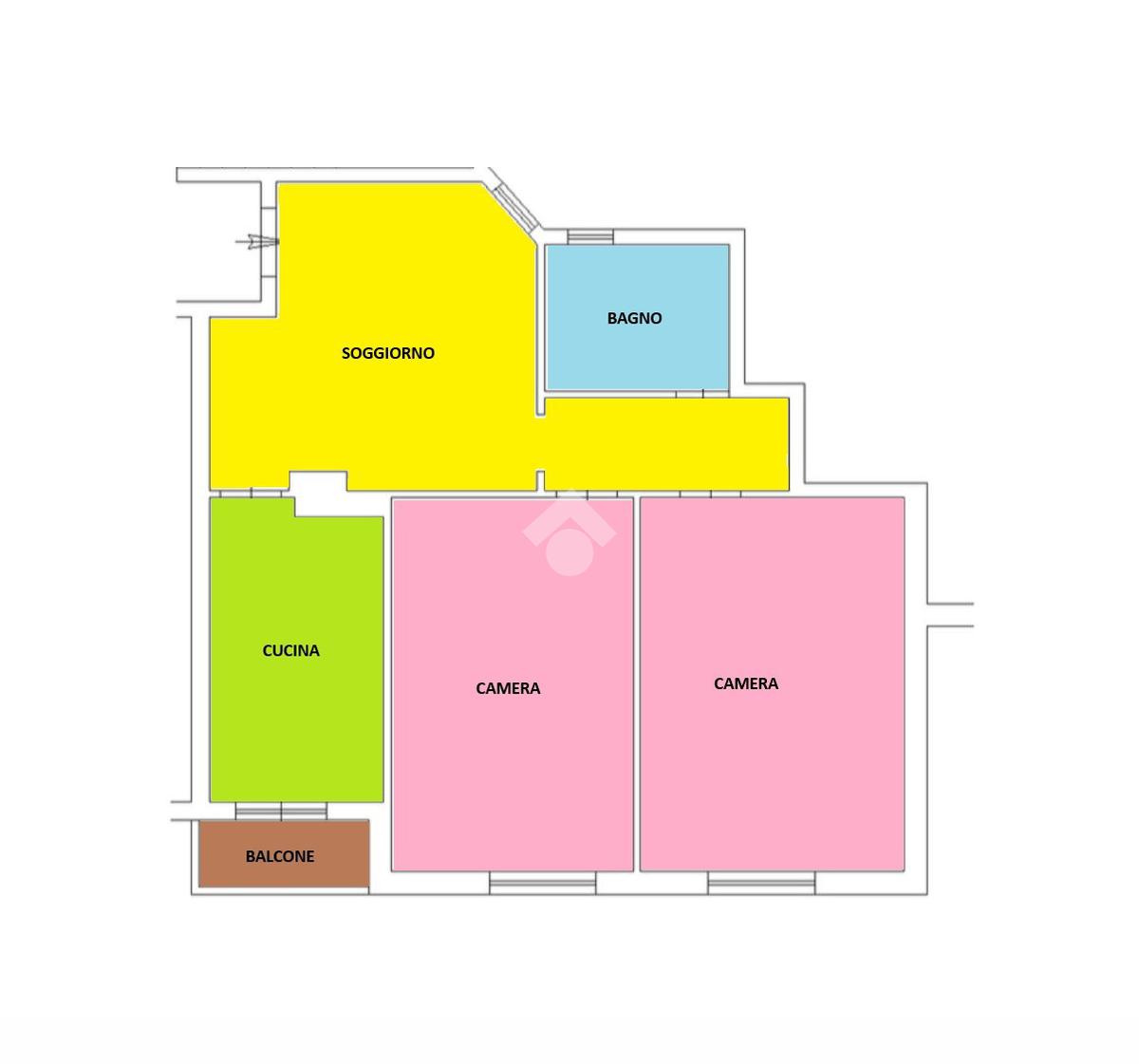 Internamente l’appartamento si compone di: soggiorno a vista, cucina abitabile con accesso al balcone, due camere matrimoniali e un bagno.