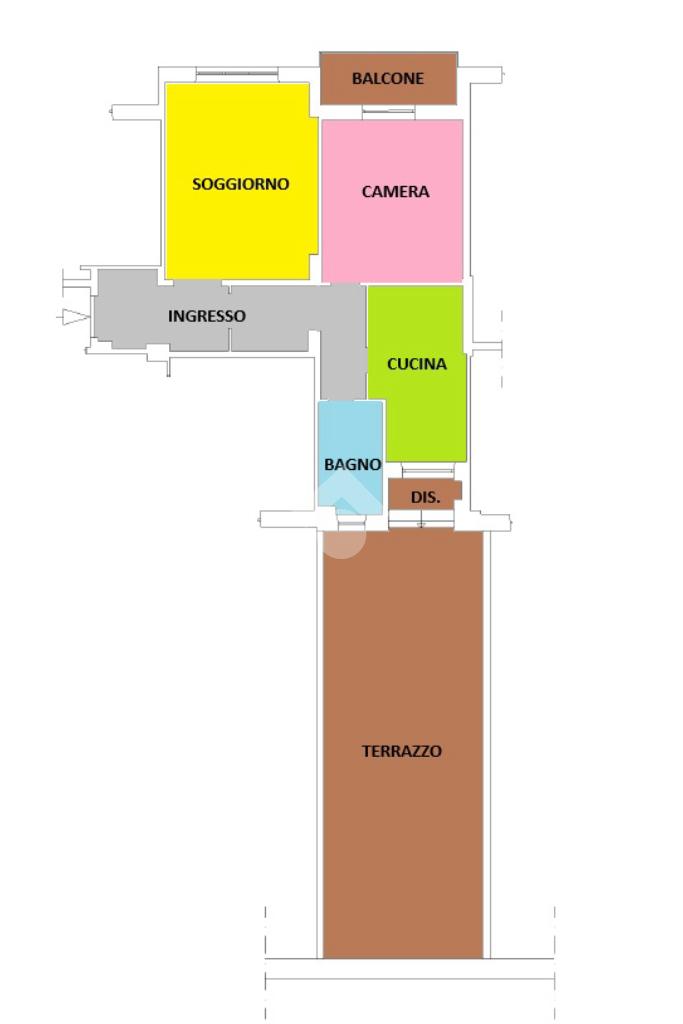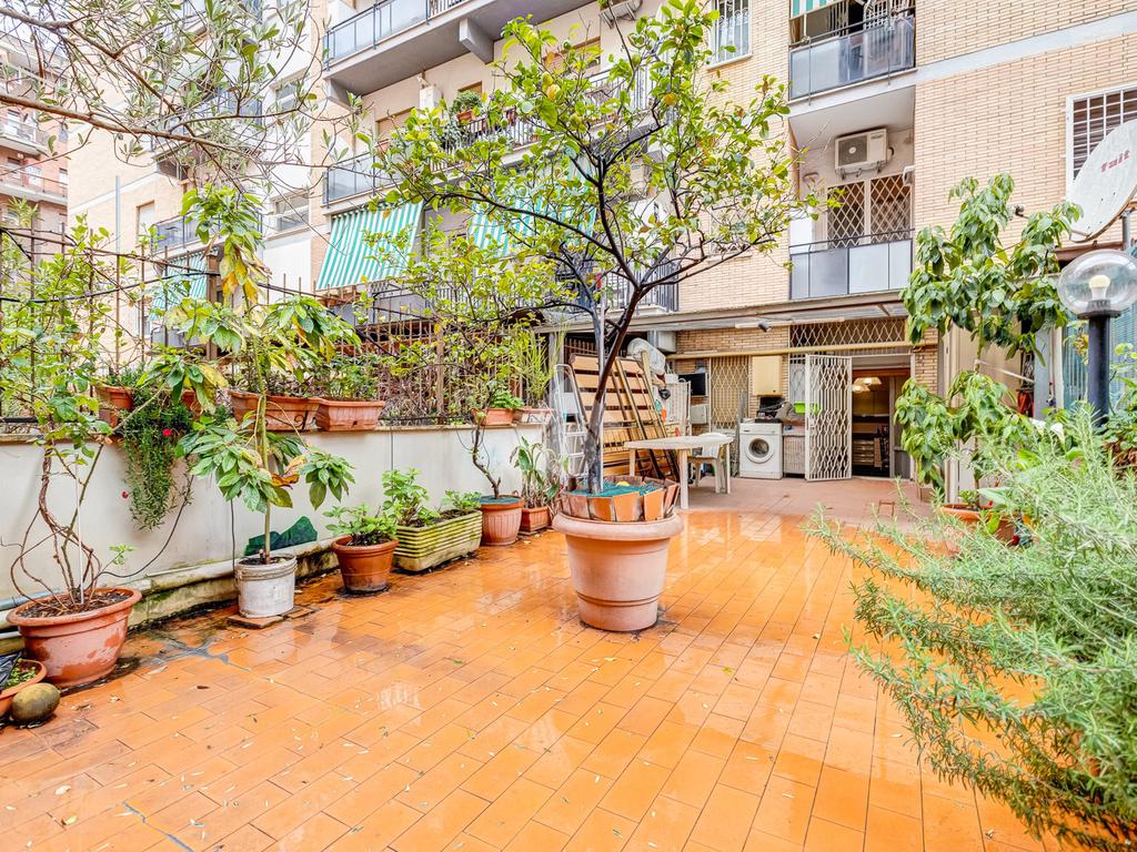 L’appartamento è attualmente composto da: ampio ingresso, soggiorno, camera da letto matrimoniale con balcone, bagno e una cucina abitabile dotata di un ampio terrazzo di 30 mq.