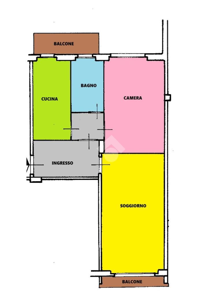 L’appartamento è attualmente composto da: ampio ingresso, cucina abitabile, soggiorno, camera da letto matrimoniale molto spaziosa, bagno e due balconcini.